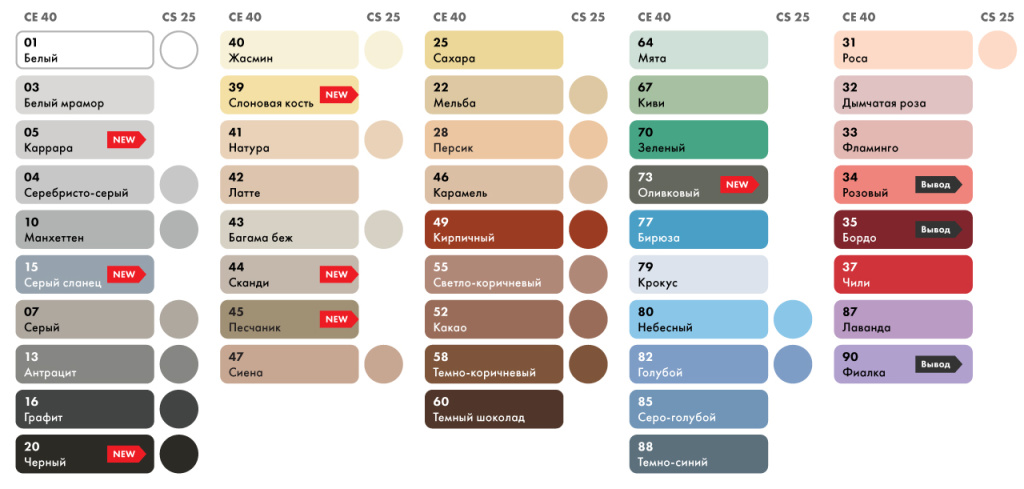 Оттенок цвета готовой цементной затирки для швов может незначительно отличаться от обозначения цвета на банке ввиду специфики техники печати на бумаге. Затирка приобретает заявленный цвет по истечении 24-48 часов, в зависимости от условий окружающей среды, после затирания швов, выполненного в соответствии с рекомендациями по применению.