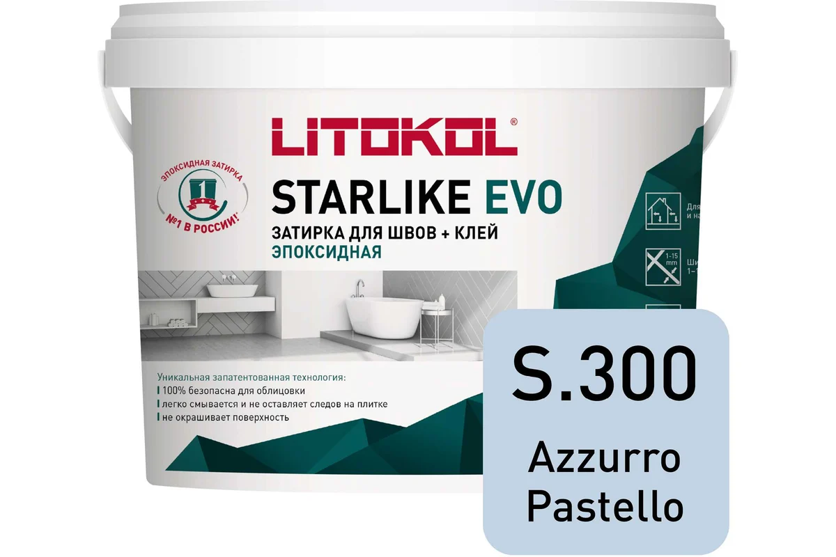 Технические характеристики «Затирка эпоксидная Litokol Starlike EVO S.300 пастельно-синий 5 кг L0485310004»